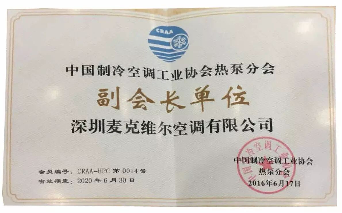 | 麥克維爾當(dāng)選中國制冷空調(diào)工業(yè)協(xié)會熱泵分會副會長單位 |